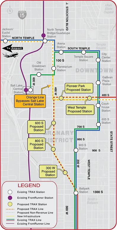 Options available for public review include a realignment of the TRAX Red Line, a new TRAX Orange Line and modifications to the operations of the TRAX Blue and Green lines.
